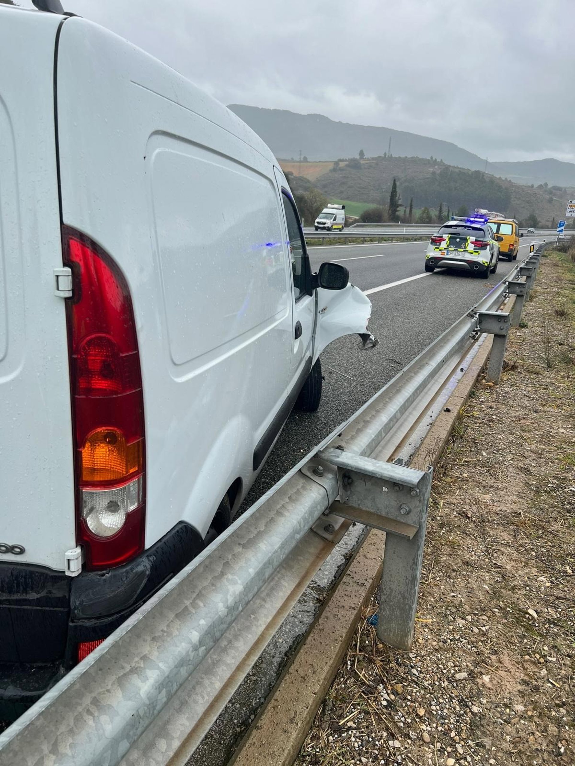 Según han informado desde la Guardia Civil, el siniestro se produjo sobre las 10 horas del pasado 7 de marzo en la A-12, a la altura de la localidad de Cirauqui, en sentido Pamplona, cuando el vehículo implicado colisionó lateralmente con otro, provocando que este último perdiera el control e impactara contra el guardarraíl.