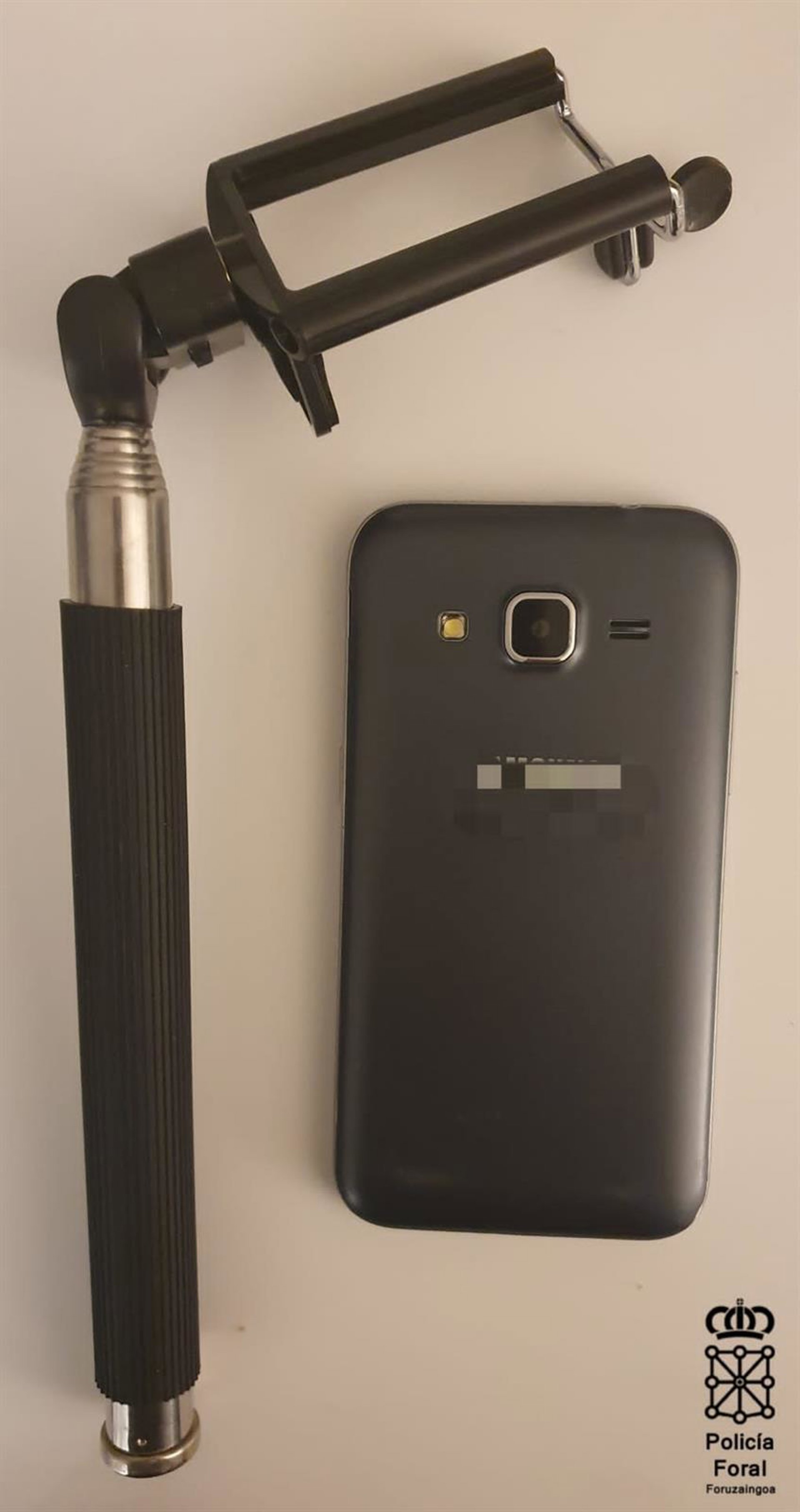 El móvil y el palo selfie incautados. - POLICÍA FORAL