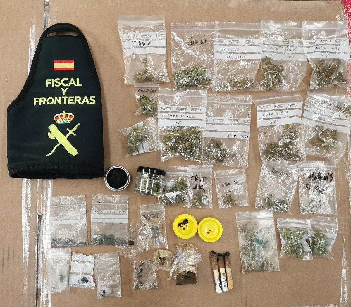 Como consecuencia de la actuación de los guardias civiles, se intervinieron 23,84 gramos de marihuana, 10,45 gramos de hachís y 3,34 gramos de resina de hachís, además de un extractor automático de resina -la cual se utiliza para extraer el polen de la planta de cannabis sativa- y 18 bolsas de tela con rejilla que se utilizaban para dicha extracción.