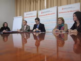 La sesión de este lunes, dedicada al Programa de Aprendizaje de Inglés, ha contado con la participación del director del Servicio de Idiomas y Enseñanzas Artísticas, Marcelino Arrosagaray; el jefe del Negociado de Programas de Aprendizaje de Lenguas Extranjeras, Raúl Azpilicueta; la directora del colegio público 'Otero de Navascués' de Cintruénigo, María Antonia Moreno; la profesora del colegio público 'Rochapea' de Pamplona, Laia Prat, y una representante de la apyma del colegio público 'Alfonso X el Sabio' de San Adrián, Cristina Rivas.