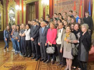 El consejero de Educación del Gobierno de Navarra, José Iribas, ha recibido en el Palacio de Navarra a 47 alumnos del colegio Saint-Joseph du Loquidy, de Nantes (Francia), que se encuentran esta semana en Navarra gracias a un programa de intercambio con el colegio pamplonés San Cernin.