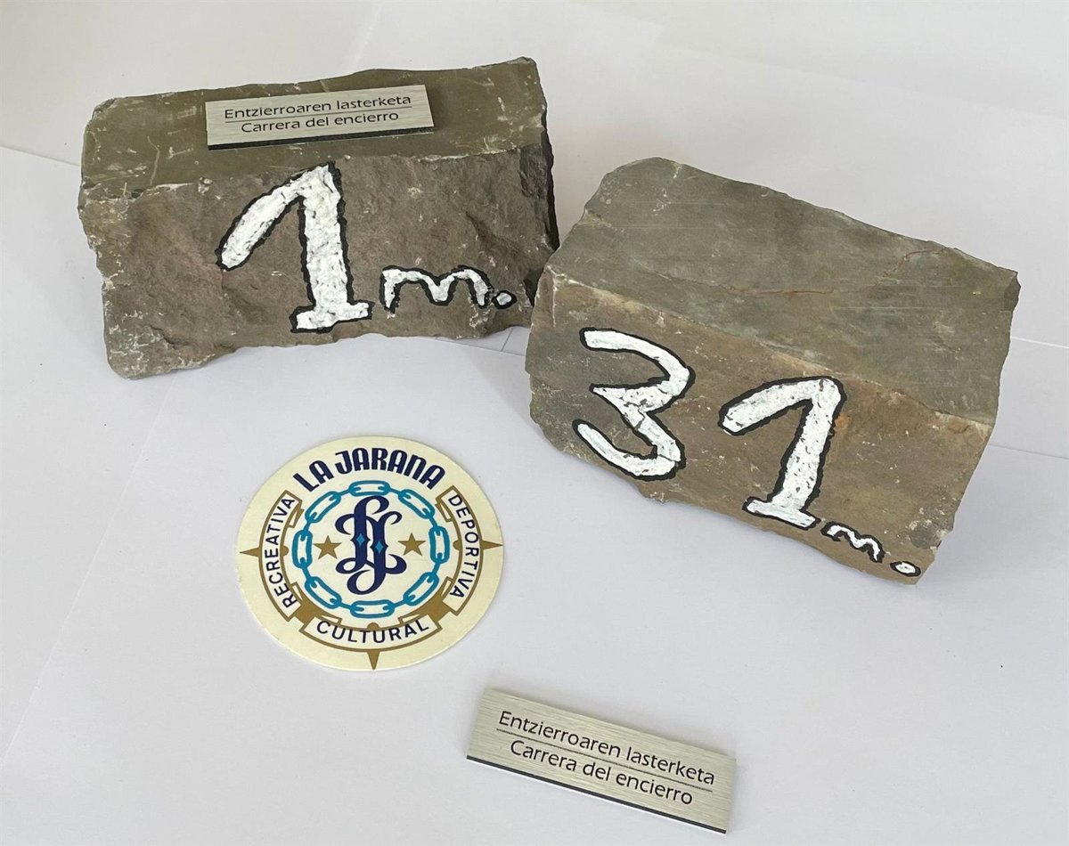 La peña repartirá así 'souvenires' con el número de metro adquirido vía 'on line' con una chapa identificatoria y el número pintado sobre la piedra, según corresponda a Santo Domingo, Ayuntamiento, Mercaderes, Estafeta, Telefónica o callejón- hasta fin de existencias.