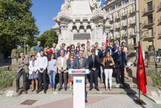 En un acto electoral al pie del monumento a los Fueros en Pamplona, acompañado de numerosos candidatos al Parlamento de Navarra y al Ayuntamiento de la capital, Javier Esparza ha reivindicado que, "sin el Fuero, Navarra no tendría ni el nivel de industrialización ni la calidad de vida, ni los servicios sanitarios, ni el sistema educativo de los que hoy disfruta".