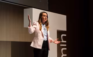 Leyre Catalán resumió en tres minutos su tesis doctoral, en la que ha desarrollado por primera vez generadores termoeléctricos capaces de aprovechar el calor geotérmico de origen volcánico para producir energía eléctrica. La solución planteada ha sido demostrada con varios prototipos instalados en el volcán del Teide (Tenerife) y en el Parque Nacional de Timanfaya (Lanzarote), y ya ha sido patentada.
