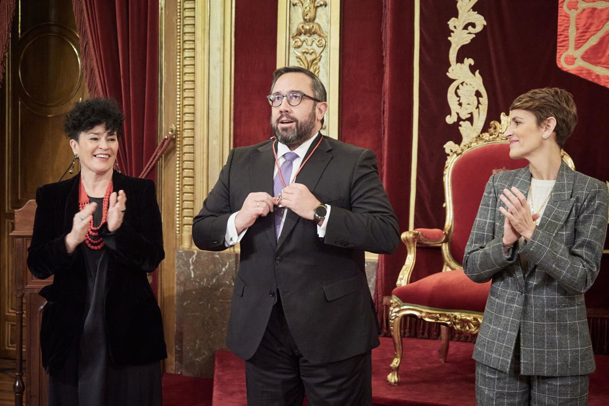 La presidenta de Navarra, María Chivite, durante la toma de posesión de Javier Remírez e Inma Jurío como nuevos consejeros del Gobierno de Navarra. - Eduardo Sanz - Europa Press