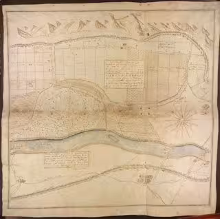 A continuación, como muestra de la importancia de la agricultura en la localidad, la microexposición continúa con un mapa en color del siglo XVIII realizado en pergamino y que representa los términos de Cortes y Buñuel. El mapa estaba contenido en un proceso judicial incoado ante el Consejo Real de Navarra sobre una disputa en materia de derechos de roturación en la zona.