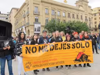 La marcha ha partido pasadas las 12 horas de la plaza del Castillo tras una pancarta en la que se leía 'No me dejes solo', portada por miembros de la asociación Libertad Animal Navarra, convocantes de la protesta, a la que se han sumado asociaciones y colectivos de distintos puntos del país que han participado en la movilización.