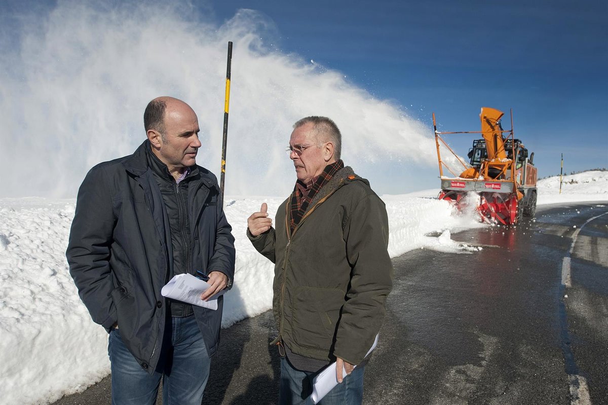 El vicepresidente de Desarrollo Económico del Gobierno de Navarra, Manu Ayerdi, ha visitado este lunes el dispositivo de mantenimiento invernal en el puerto de Belagua, así como la reforma variante de Burgui, cuyas obras han finalizado recientemente.