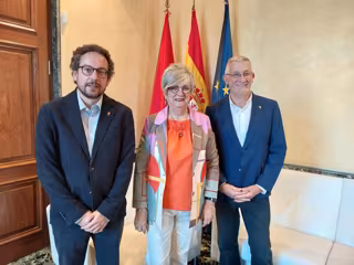 Joseba Asiain, María José Leoz y Félix Taberna, en un encuentro reciente mantenido en el Palacio de Navarra. - GOBIERNO DE NAVARRA