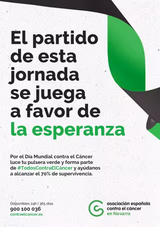 Durante la jornada previa y posterior a la celebración del Día Mundial contra el Cáncer: 31 de enero y 1 y 2 de febrero, así como la del 7, 8 y 9 de febrero, la iniciativa 'Brazaletes de Esperanza' contará con la participación de los equipos de las categorías regionales y locales de Navarra, así como con la participación del deporte formativo.