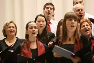 Más de 150 personas asistieron este jueves al Concierto de Navidad ofrecido por el coro de la Universidad Pública de Navarra, dirigido por Arturo Goldaracena. El recital, que incluyó villancicos y canciones tradicionales de Navidad, se celebró a las 20 horas en el Aula 09 del Aulario.