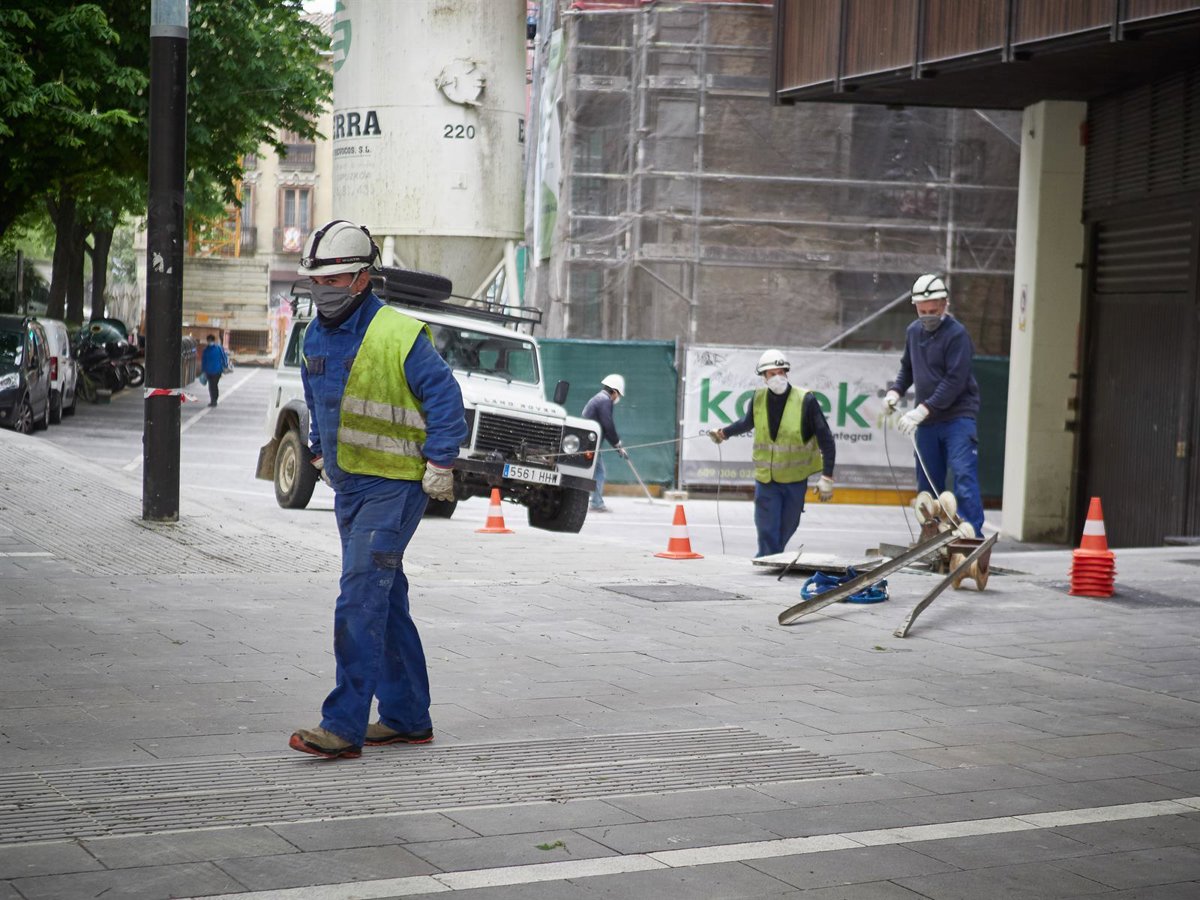 Obreros trabajan en las calles de Pamplona durante el día 34 del estado de alarma en el país por la crisis del coronavirus donde colectivos esenciales y aquellos que no puedan teletrabajar tienen permitidos los desplazamientos. En Pamplona, Navarra, (Es - Eduardo Sanz - Europa Press - Archivo