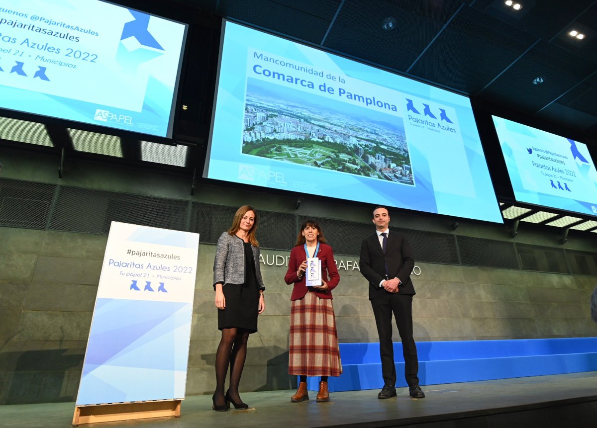 Allí han estado presentes las 45 entidades locales (ayuntamientos y agrupaciones de municipios) galardonadas, de las que 28 han obtenido el máximo reconocimiento representado por las tres pajaritas azules, siendo una de ellas la Mancomunidad de la Comarca de Pamplona. Maite Esporrín, vicepresidenta de la entidad, ha recogido el galardón otorgado a la MCP.