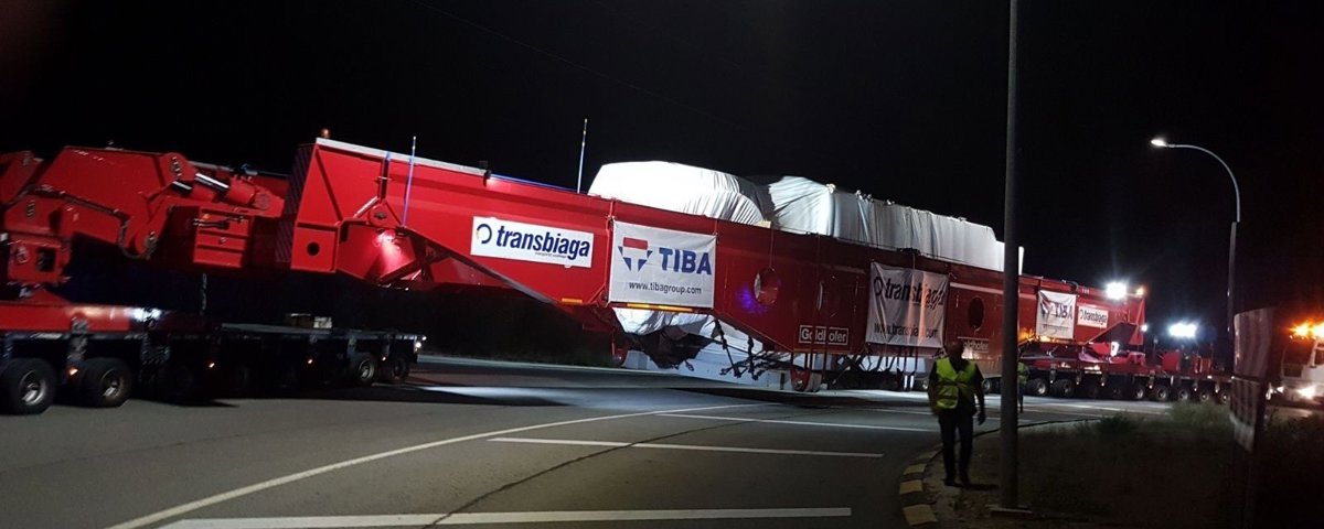 Se trata de un transporte especial de 100 metros de largo, 6.5 de ancho, 5.30 metros de alto y 515 toneladas. A partir de las 23 horas de este miércoles reanudará la marcha hasta Zuasti. Según la Policía, este jueves llegaría a Alsasua, donde permanecerá hasta que la Ertzantza le recoja.