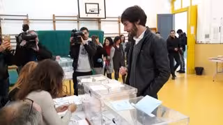 Tras depositar su voto, el candidato de Podemos ha llamado a la participación en estos comicios "especialmente a los jóvenes que tienen derecho a voto por primera vez; pero también a las personas que hoy están trabajando y tienen que pedir permiso para salir a votar; a las mujeres y a las personas que están en precario".
