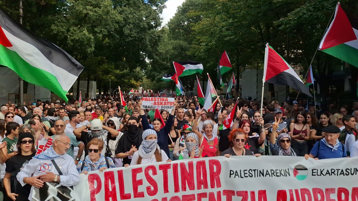 Han asegurado que "la solución de los dos estados es un fraude. Si el estado colonial israelí sigue vivo, el pueblo palestino desaparecerá. Y si Palestina se libera, será porque el estado terrorista de Israel ha desaparecido". Por ello, han llamado a "reforzar la lucha contra todos sus cómplices" y han exigido a los gobiernos de Navarra y Euskadi que "corten toda relación comercial, académica y diplomática" con Israel.