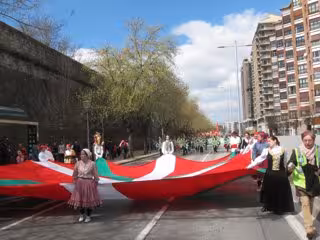 Tras recorrer varias calles del centro de Pamplona, ondeando ikurriñas, banderas de Navarra, Cataluña y Galicia, la cabeza de la manifestación ha llegado pasadas las 13.10 horas al Paseo de Sarasate, donde se ha celebrado el acto político.