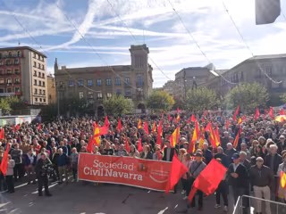 La movilización, con el lema 'Por la libertad, la unidad y la igualdad. No en mi nombre: ni amnistía, ni autodeterminación', se ha desarrollado pasadas las doce del mediodía en la Plaza del Castillo de Pamplona. El su kiosco se ha desplegado una pancarta con el mensaje 'Por la libertad, la unidad y la igualdad'. Los asistentes han llenado una de las mitades de la plaza, donde se han visto muchas banderas de España y Navarra, y se han escuchado gritos de 'Sánchez traidor', 'Puigdemont a prisión' o 'Yo soy español'. Asimismo, se han visto carteles con lemas como 'PSOE traidor' o 'Amnistía No-Ez'.