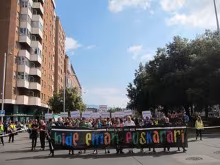 La marcha, precedida por una pancarta en la que se leía 'Bide eman euskarari', ha partido de los cines Golem y ha recorrido la avenida Bayona y la Avenida del Ejército hasta el Paseo Sarasate.