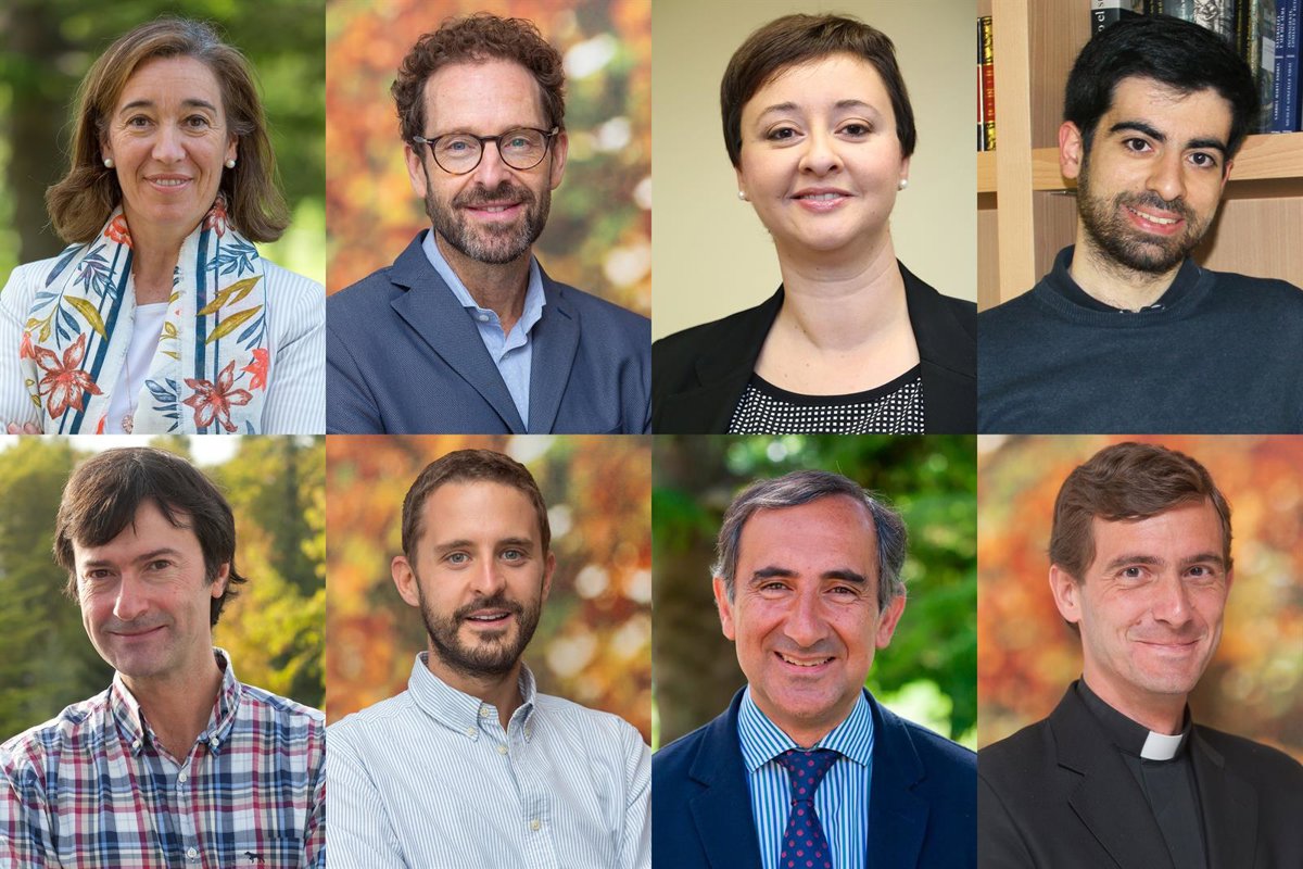 Investigadores que realizan los proyectos financiados. Arriba (I-D): Julia Pavón, Albert Recasens, María José de la Torre Molina, Dámaso Izquierdo; abajo (I-D): Luis Alberiko Gil-Alaña, Raúl Bajo Buenestado, Jaume Aurell y Álvaro Fernández de Córdova. - MANUEL CASTELLS - UNIVERSIDAD DE NAVARRA.