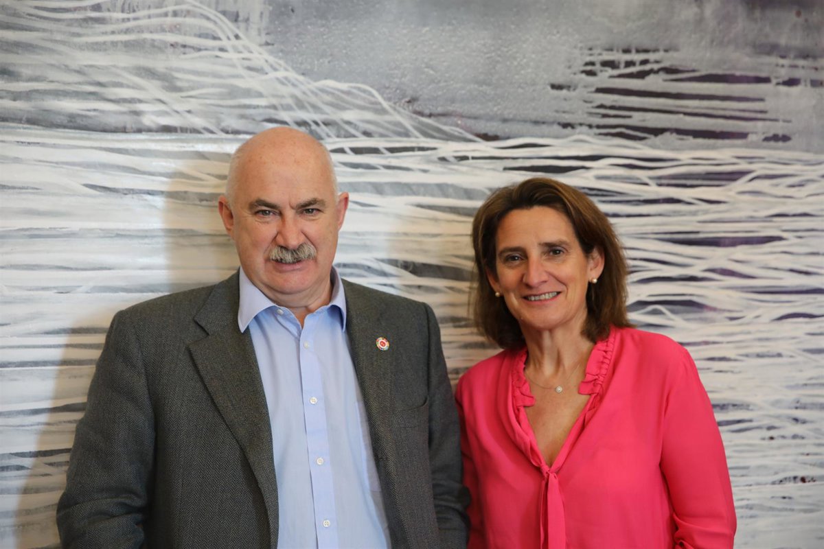 La ministra para la Transición Ecológica y el Reto Demográfico, Teresa Ribera, y el vicepresidente segundo del Gobierno de Navarra, José M Aierdi, en la sede del Ministerio. - GOBIERNO DE NAVARRA
