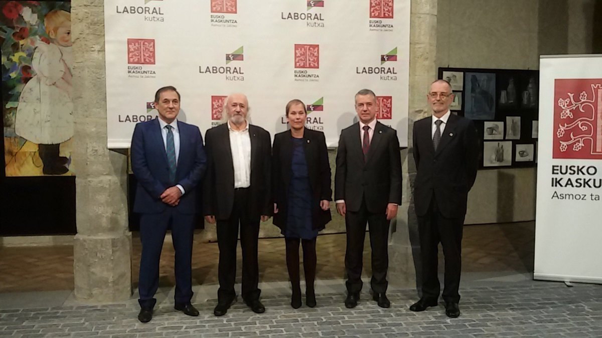 Armendáriz ha recibido el galardón este martes en el Palacio del Condestable de Pamplona de manos del presidente de Caja Laboral, Txomin García, y del presidente de Eusko Ikaskuntza, Iñaki Dorronsoro. Al acto también han acudido la presidenta del Gobierno de Navarra, Uxue Barkos, y el lehendakari vasco, Íñigo Urkullu, además de la presidenta del Parlamento de Navarra, Ainhoa Aznárez, y el alcalde de Pamplona, Joseba Asiron.