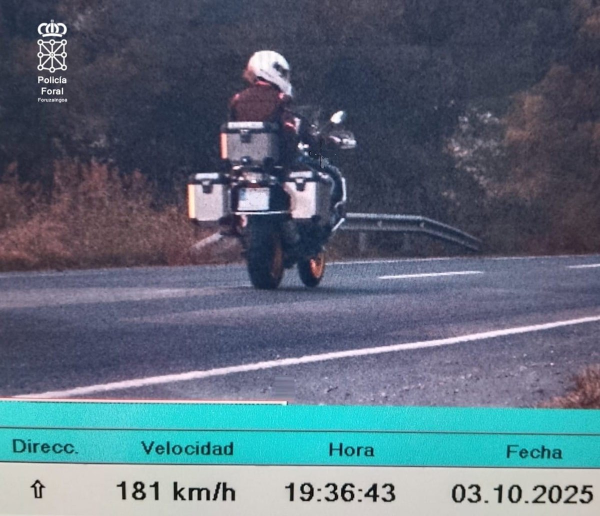 Imagen del radar que detectó al motorista. - POLICÍA FORAL