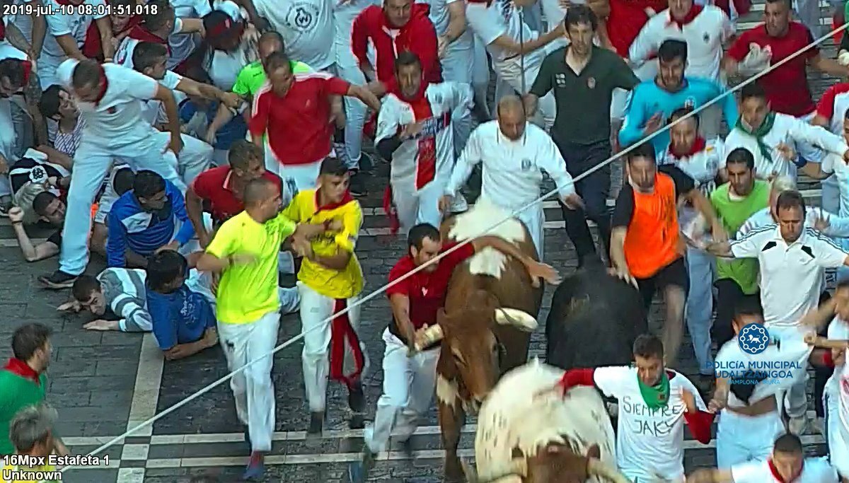Multado con 4.000 euros un corredor 'reincidente' del encierro por agarrarse a los toros. - POLICÍA MUNICIPAL DE PAMPLONA