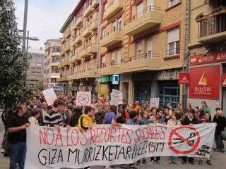 Los manifestantes, entre los que se encontraban representantes políticos de Izquierda-Ezkerra o Nafarroa Bai, entre otros, han coreado lemas como 'Gastos militares para escuelas y hospitales', 'No más recortes en sanidad' o 'Más educación menos recortes'.