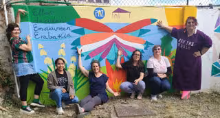 El mural, con los colores LGTBi, recoge las palabras 'Paz' y 'Ellas deciden /Emakumeen Erabakia' está poblado de formas redondeadas con imágenes como la del torogoz, el pájaro-emblema de El Salvador o las de diversas plantas. El mural se enmarca precisamente en el proyecto 'Ellas Deciden. Construyendo alianzas feministas entre El Salvador y Pamplona', un trabajo que desde hace años "busca promover espacios de encuentro y reflexión social sobre las diferentes vulneraciones de los derechos que sufren las mujeres y niñas en los países del Sur global".