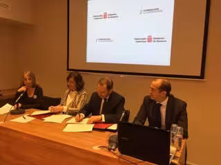 El acto de firma del convenio entre ambas entidades ha contado con la presencia de la consejera de Cultura, Deporte y Juventud, Ana Herrera, y con la directora del Servicio de Museos, Susana Irigaray. Joaquín Giráldez y Javier Fernández, presidente y director general, han representado a Fundación Caja Navarra.