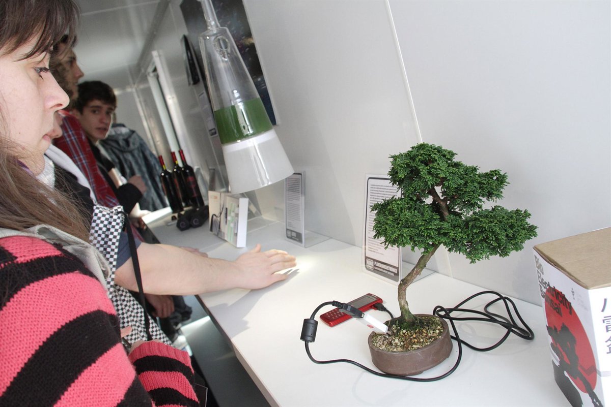 Pinturas interactivas que cambian de color con solo pulsar un botón; energía sostenible a través de las plantas; chocolates medicinales, un vino cuyo sabor se puede adaptar, mediante el microondas, a la denominación que se quiera; nanocalcetines que, aprovechando su energía electroestática, se suben solos a través de movimientos minúsculos, facilitando la tarea de vestirse a las personas mayores; papel fabricado con nuestra propia piel o cristales autolimpiables son algunos de los singulares objetos que se presentan en esta exposición.