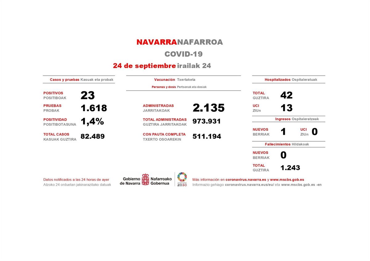 Datos de Covid del 24 de septiembre - GOBIERNO DE NAVARRA
