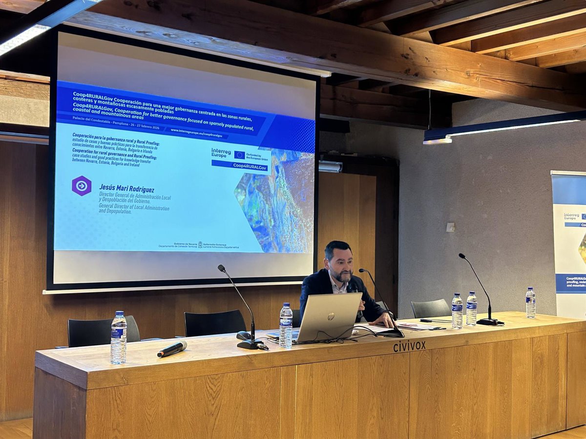El Departamento de Cohesión Territorial del Gobierno de Navarra, a través de la Dirección General de Administración Local y Despoblación, ha celebrado este jueves en el Palacio Condestable de Pamplona, la primera jornada del evento de clausura de la primera fase del proyecto europeo Coop4RURALGov. El encuentro se ha centrado en el estudio de casos y buenas prácticas para la transferencia de conocimientos entre los países socios del proyecto: Navarra, Estonia, Bulgaria e Irlanda.