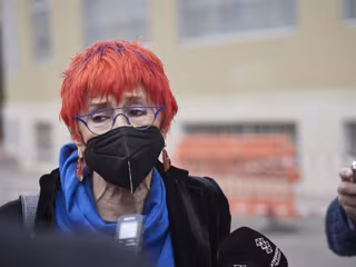La consejera de Salud del Gobierno de Navarra, Santos Induráin a su salida después de ser vacunada contra el Covid-19 en el Antiguo colegio de Maristas, a 10 de abril de 2021, en Pamplona, Navarra (España). La consejera de Salud se vacuna con la dosis d - Eduardo Sanz - Europa Press