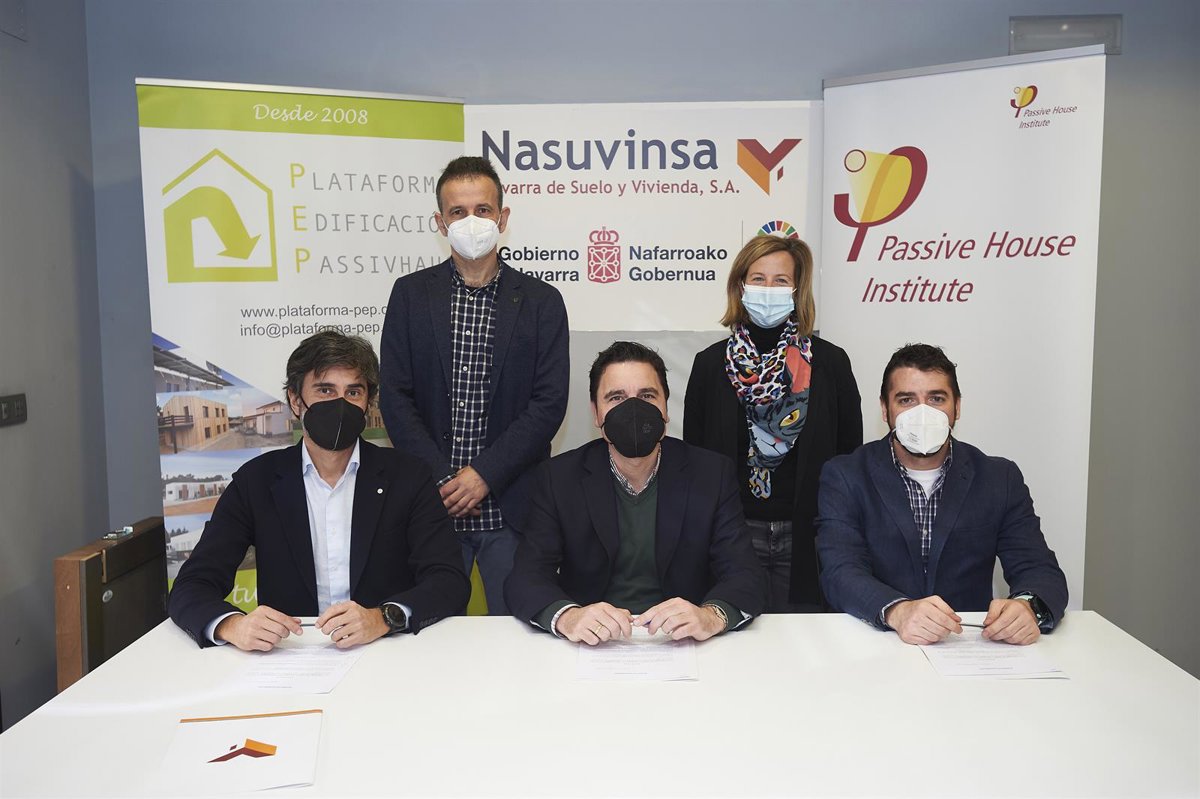 Este acuerdo ha sido suscrito en Nasuvinsa por el director gerente de esta sociedad pública, Alberto Bayona, y el representante del Passivhaus Institut Jürgen Schnieders, entre otras personas técnicas de ambas entidades.