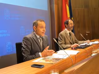 Todos los detalles de la presencia de Navarra en Fitur han sido presentados este viernes en rueda de prensa por el consejero de Cultura, Turismo y Relaciones Institucionales del Gobierno foral, Juan Luis Sánchez de Muniáin, y el director general de Turismo, Carlos Erce.