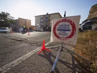 Policías forales controlan las carreteras de Falces el mismo día de la entrada en vigor del confinamiento en el municipio debido al aumento de casos de Covid-19, en Falces, Navarra, (España), a 30 de septiembre de 2020. Al confinamiento de Falces se un - Eduardo Sanz - Europa Press