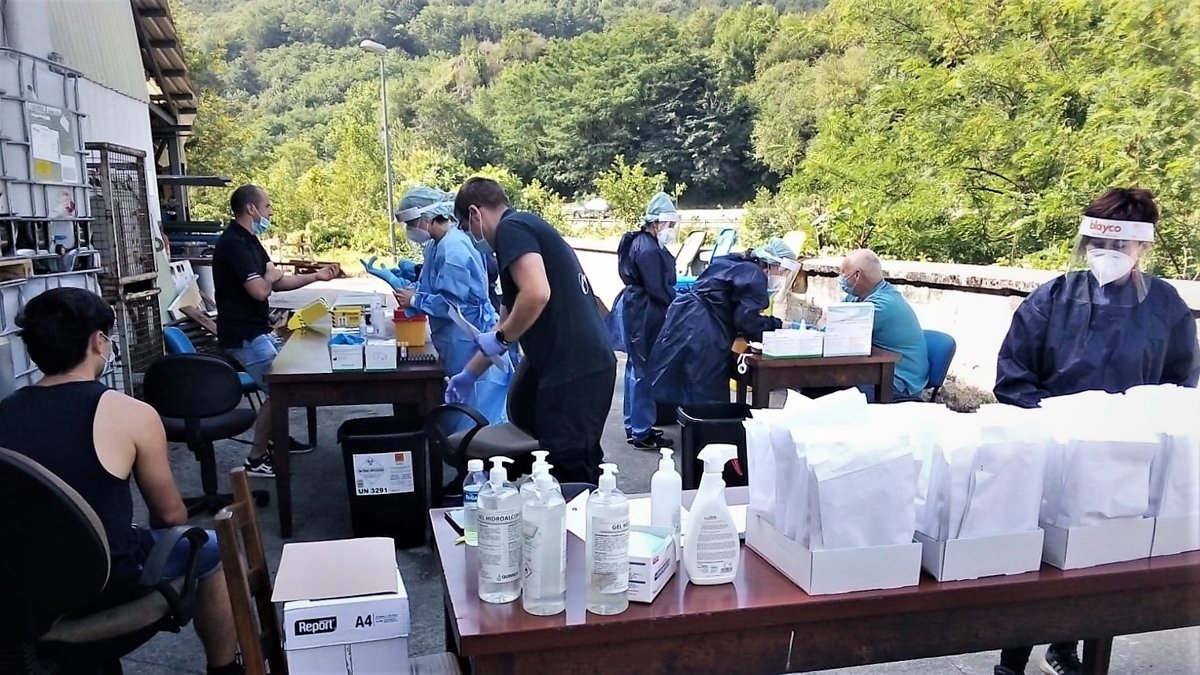 Realización de pruebas en una empresa de la zona norte de Navarra, zona en la que se ha registrado un repunte de casos de Covid-19. - GOBIERNO DE NAVARRA