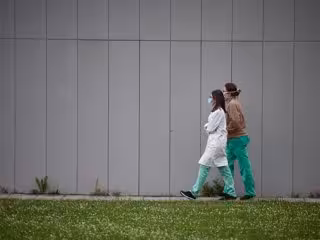 Varios sanitarios caminan por el Complejo Hospitalario de Navarra durante a Pandemia Covid-19 en Abril 28, 2020 en Pamplona, Navarra, España - Eduardo Sanz / Europa Press - Archivo