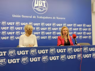 La representante sindical, junto a M José Latasa, responsable del Gabinete de Salud Laboral de UGT de Navarra, han sido las encargadas de presentar este lunes en rueda de prensa los datos del informe elaborado por el sindicato sobre la situación de la siniestralidad laboral en Navarra, que presenta el segundo índice de incidencia más alto del conjunto de España, tras Castilla La Mancha.
