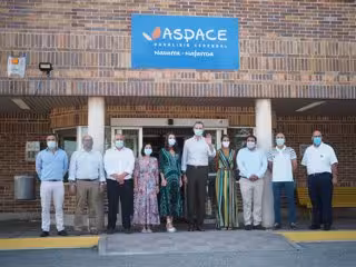 Los Reyes Don Felipe y Doña Letizia, con la presidenta de Navarra, María Chivite, y otras autoridades, durante su visita al centro Ramón y Cajal de Aspace. - EDUARDO SANZ-EUROPA PRESS