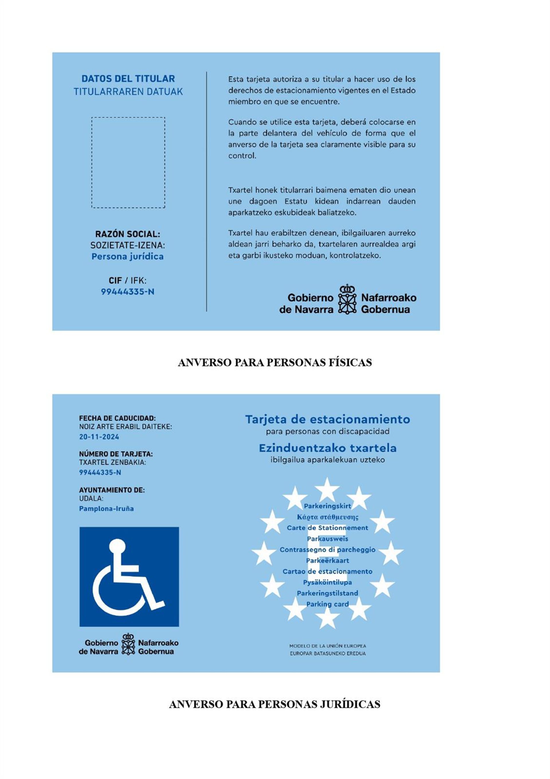 Imagen de la nueva tarjeta unificada de estacionamiento para personas con discapacidad - GOBIERNO DE NAVARRA