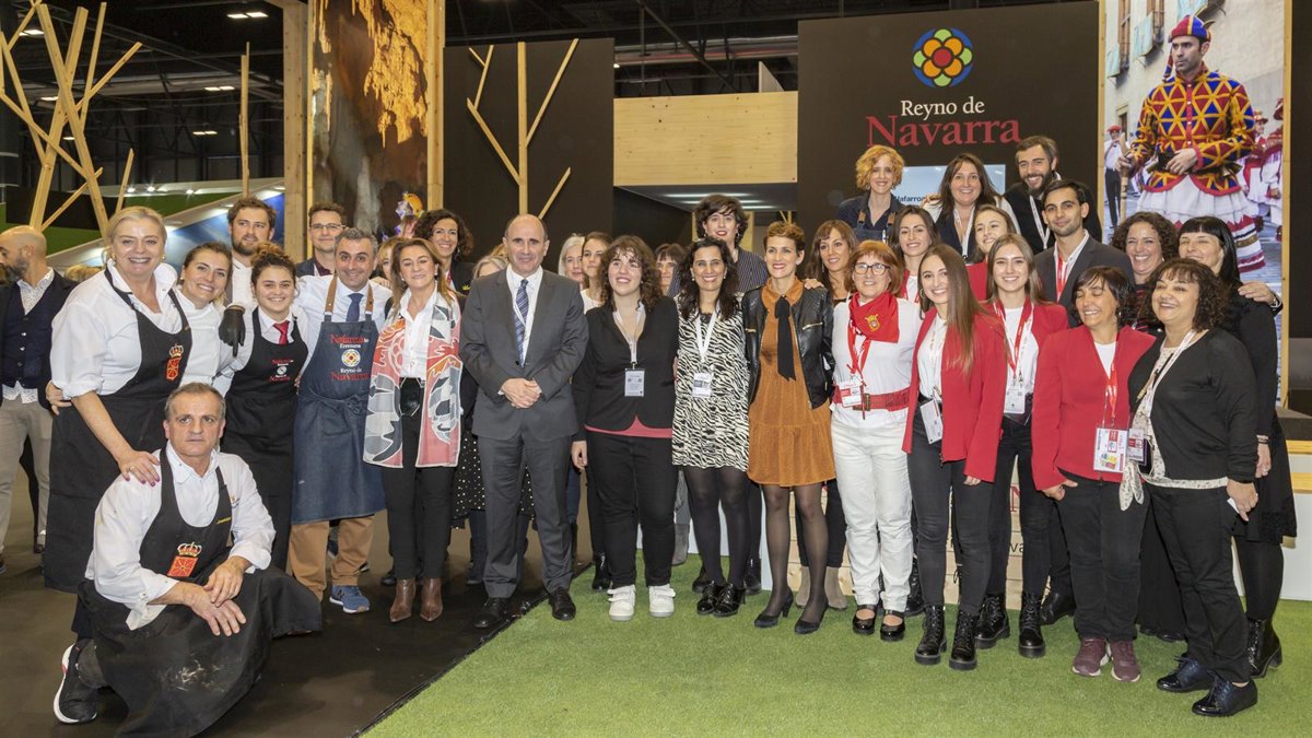 La presidenta Chivite y el consejero Ayerdi con las personas que atendieron el stand de Navarra en Fitur. - GOBIERNO DE NAVARRA