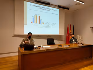 Los miembros del equipo de investigación de la UPNA Ernesto Pérez-Esain y Vidal Día de Rada presentan el Navarrómetro 2021. - EUROPA PRESS