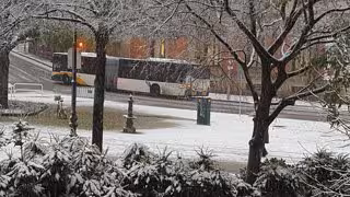 Pasadas las 8 horas han comenzado a caer los primeros copos sobre la capital navarra, que han cuajando en apenas unos minutos aunque por el momento sin ocasionar grandes problemas en la circulación.