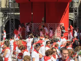 El párroco de San Lorenzo, Santos Villanueva, ha sido el encargado de oficiar una breve ceremonia en la que algunos pequeños, en representación de todos los presentes, han ofrecido sus peticiones a San Fermín.