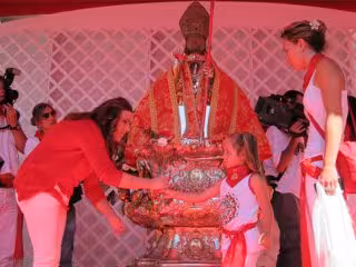 Seguidamente, ha dado comienzo la ofrenda floral. Cientos de niños, de todas las edades, han ido subiendo al altar, donde han depositado sus flores alrededor del santo y han podido tocarle y besarle.