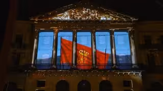 La fachada del Palacio de Navarra hacia la Avenida de Carlos III sirve de pantalla para una proyección audiovisual o video mapping, en el que singulares personajes recorren los paisajes de la Comunidad foral. Esta obra, realizada por Andrés Sandimas, se ofrece los días 3, 4 y 5 cada 20 minutos, en varios pases de 19 a 22 horas.
