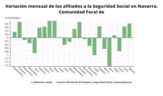 Variación mensual de los afiliados a la Seguridad Social en Navarra. - EPDATA
